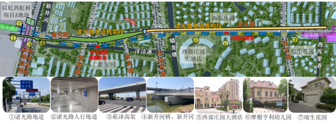 芳乐路站这次开始了~季乐路站上行隧道全长约466米,采用预埋承插管片,经周泾港桥(桩基侵入隧道断面,需拆除重建桥梁,Ⅱ级风险)、建筑一局集团、上海韩国学校、开市客、虹桥成信中心、上海永慈康复医院等建筑。