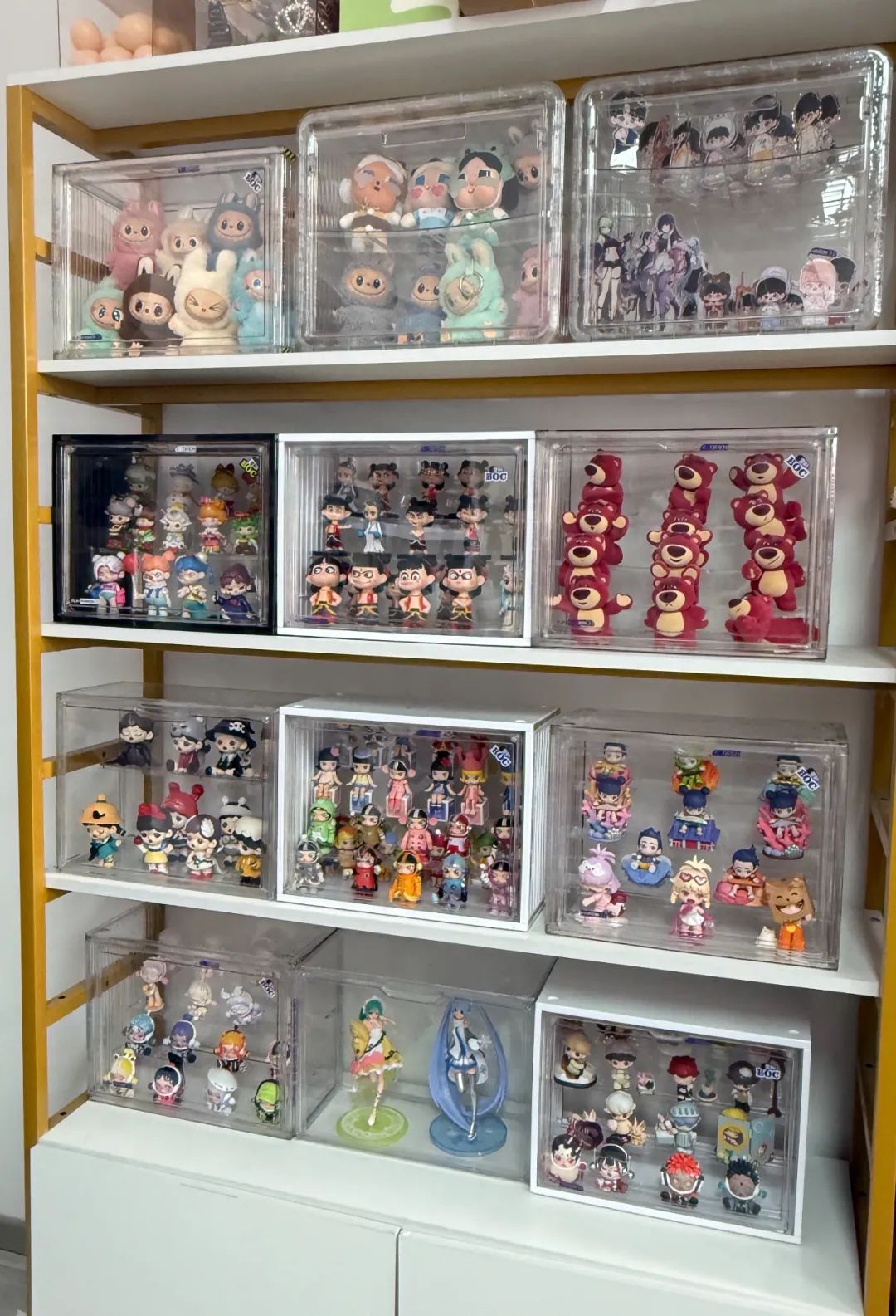 伴随着以Labubu为首的搪胶玩偶的新一轮爆发,盲盒公仔的热度也持续走高,而收纳盒、展示柜,这些看似无用的附属品,也不仅承载起单纯收纳的作用,它们逐渐变成新一代年轻人展示个性化藏品和自我价值表达的窗口。泡泡玛特创始人王宁曾说,在现代社会,让人获得满足感的一定是非刚需性产品。