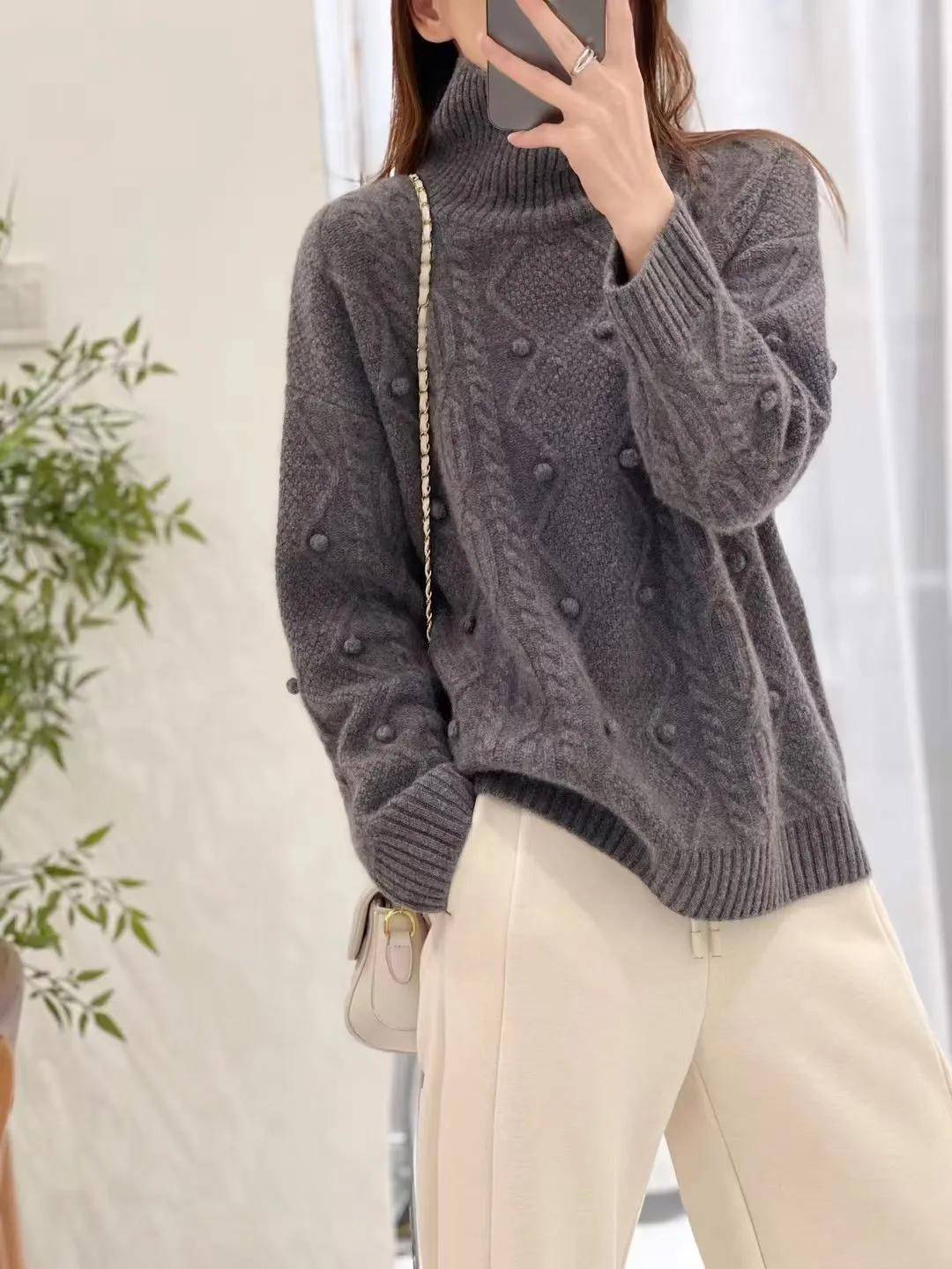 市场需求的变化,传导至供给端,羊绒的产品形态也迎来了改变,从厚重的高领,变得越来越精致。作为1688商家,曹阳对此感受颇深,在他的经营中,那些版型修身、克重较轻的16针、18针薄款羊绒衫,燕麦色、奶白色、雾霾蓝等低饱和色彩,以及带有镂空设计细节的款式迅速走红,成为直播间与工厂的爆款。