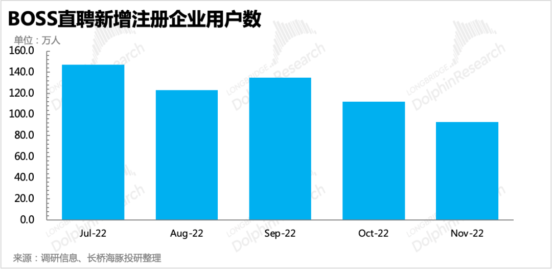 相比于同行惨遭宏观之拳,BOSS直聘还面临着监管的重击、互联网裁员潮的影响,但硬币的另一面,也就意味着当下BOSS直聘困境反转的拐点意味更强。7月网络安全审查落地,冰冻了一年的新用户注册才终于恢复。