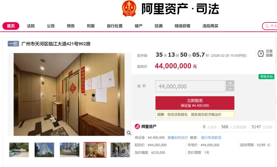 在阿里法拍平台上,一套位于广州市天河区临江大道421号902房的豪宅,正以4400万元的起拍价等待竞拍。这套建筑面积317.5683平方米的顶豪,产权人为恒大创始人许家印的侄子许火健。许火健是广州恒大实业集团董事、核心供应链企业广州雅旭装饰的股东,身份自带的“家族+商业”双重绑定属性,注定了其命运与恒大深度捆绑。而在许火健之前,雅旭装饰持股80%的控股股东、许家印的哥哥许家钦,早已因违反限高令,于2022年5月被列为失信被执行人。>>>点击查看详情