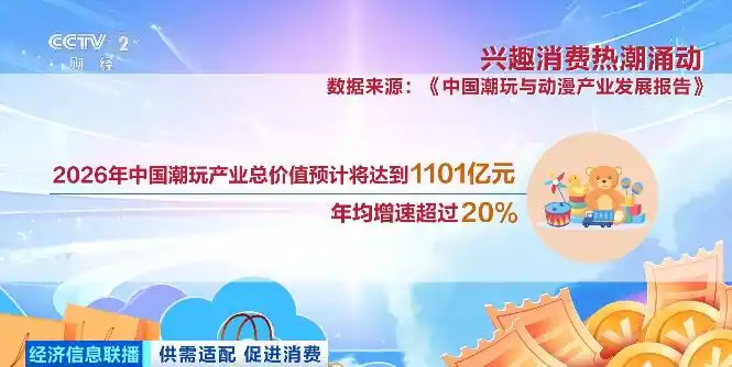 随着90后、00后成为消费主力军,露营装备、手办潮玩等新型兴趣消费正在快速崛起。一些更为细分的赛道——娃衣、挂件更是在年轻人群中悄然圈粉。一家去年12月才开业的潮玩店店长介绍,目前店里娃衣的销量已经超过了玩偶本身,仅开业当天的销售额就突破了30万元。每天进店客流大概有2000多人次,成交量每天500多件。另据《中国潮玩与动漫产业发展报告》,2026年,中国潮玩产业总价值预计将达到1101亿元,年均增速超过20%。