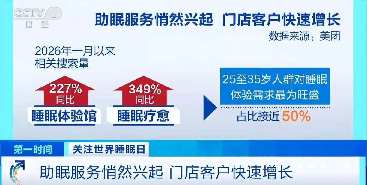 近年来,围绕睡眠的线下体验服务越来越丰富,颂钵音疗等新兴业态悄然兴起。数据显示,从今年一月以来,“睡眠体验馆”相关搜索量已同比大涨227%,“睡眠疗愈”搜索量同比增长349%。其中,25岁至35岁人群对睡眠体验需求最为旺盛,占比接近50%。随着睡眠经济持续升温,智能助眠产品迎来销售热潮。从线上平台的交易额来看,智能电动床垫增长趋势迅猛,同比增长206%。智能止鼾枕、智能沙发的同比涨幅亦超过了30%。