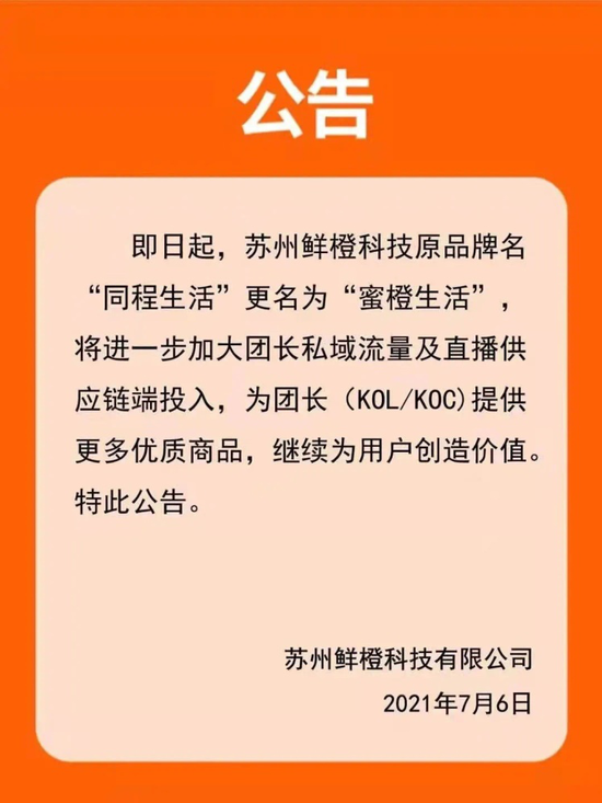7月7日晚间,社区团购巨头同程生活母公司苏州鲜橙科技有限公司宣布,因经营不善,公司决定申请破产,现拟提出破产申请,将依法推进债务处置工作。