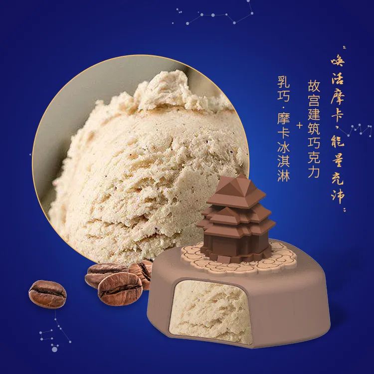 值得一提的是,这四种口味的冰淇淋分别身披白巧、榛巧、乳巧及黑巧外衣,“伪装”成了月饼的形状,搭配精致的故宫建筑巧克力,点名“角楼伴月,仲秋美意”的中秋新品主题。