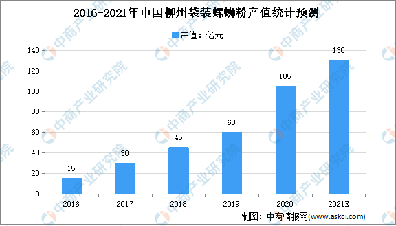 2020年,柳州螺蛳粉销售收入达到了105亿元,袋装产品网络销售量达到惊人的11亿袋,比5年前产销量翻了21倍。