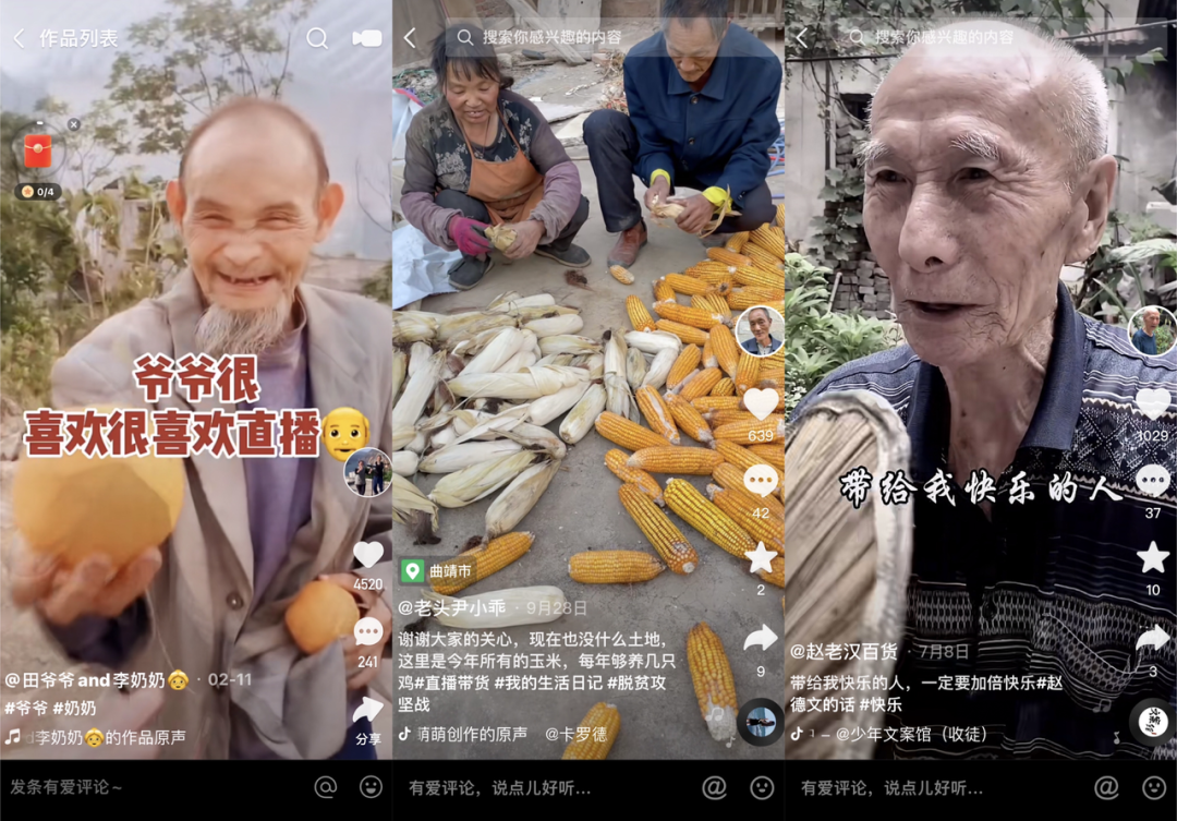 与时尚老年网红不同,更多来自农村、生活拮据的老年人也走进了直播间,他们说不了标准的普通话,甚至也不识字,但却匆匆开启了直播带货的谋生之路。