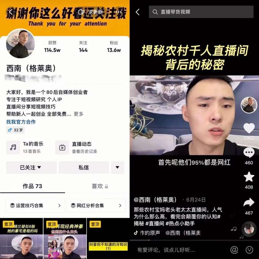 达人“西南格莱奥”曾在自己的短视频中说,那些以农村为背景、身世可怜的老年人主播,95%都是MCN机构包装出来的演员,他们有自己的一整套直播运营方式。比如在开播时,买1000块的流量,这样就能在半小时内拿到5000人的流量推荐,而在加上公司的形象包装、话术培训等一系列手段,这些老年主播直播间就能轻松斩获成千上万的粉丝。