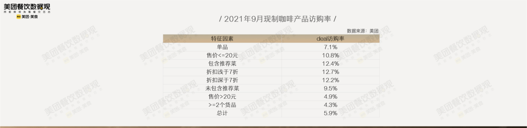 以2021年9月为例,咖啡店小于7折折扣的产品,访购率更高。
