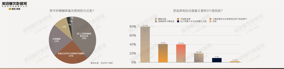“节省配送费”占比40.97%,“习惯或喜欢到店感受店内气氛或香气”占比40.03%。