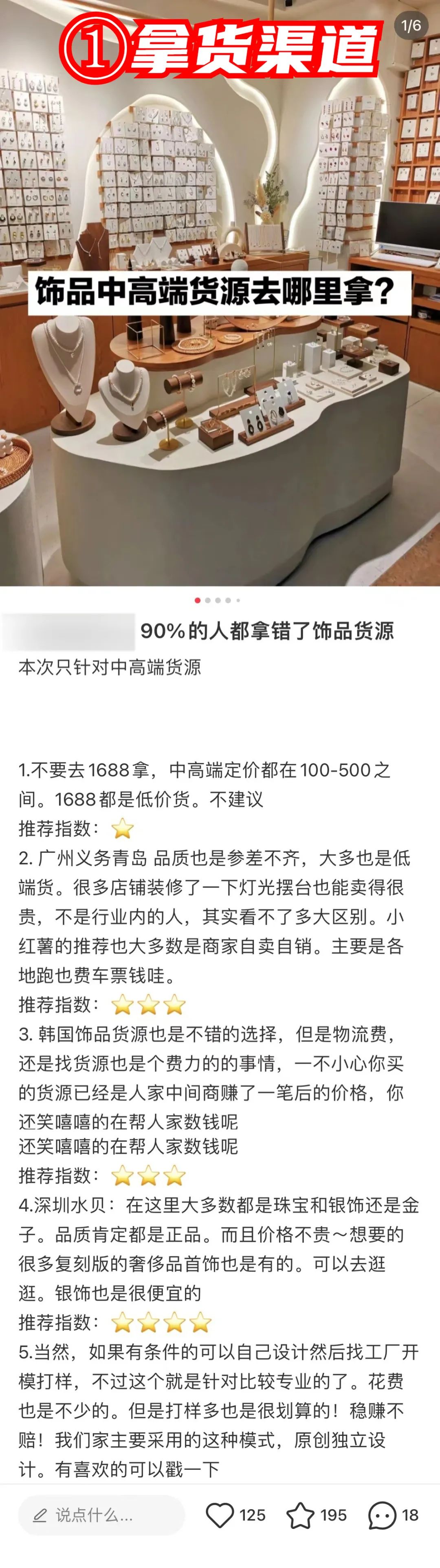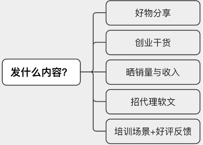 内容2:创业干货。线上卖货主要分享拿货渠道、维护客户技巧、批发议价、线上店铺运营技巧、发货物流发货问题等干货;开实体店主要分享实体店选址、店铺装修、成本预算、产品定价、引流拓客等干货。