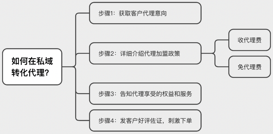 步骤1:添加微信号,询问目前职业、所在城市、行业了解度、预算等信息,在明确获知客户有代理意向后,发品牌或厂家介绍、代理加盟政策、项目优势、产品资料等内容。