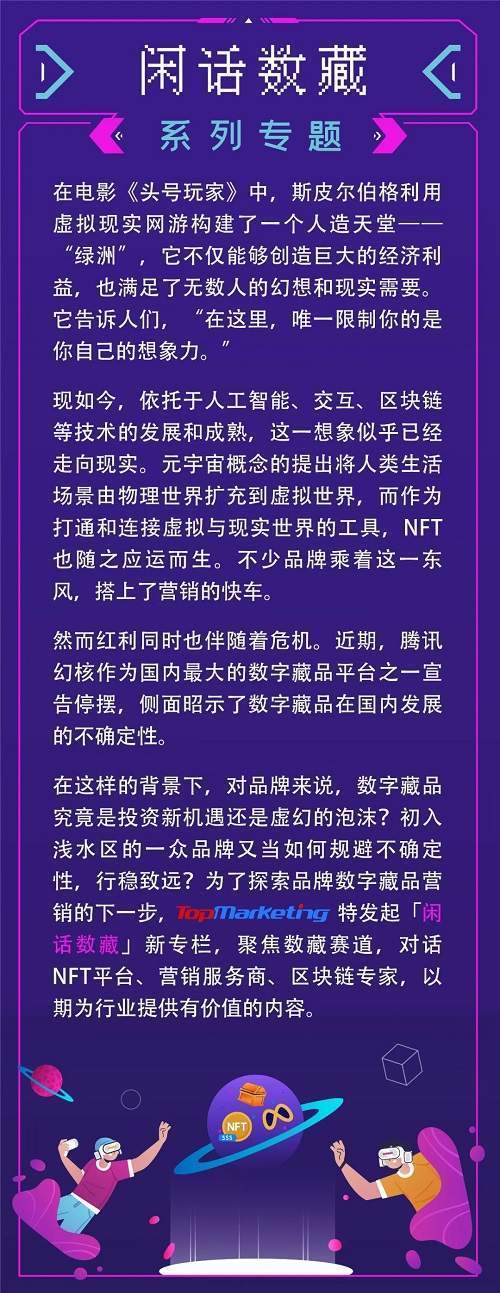 TopMarketing:当下除了一些投资机构、大厂,其实很多品牌也在入局。在数字藏品与品牌结合越来越紧密的今天,数字藏品营销对品牌有哪些意义或价值?