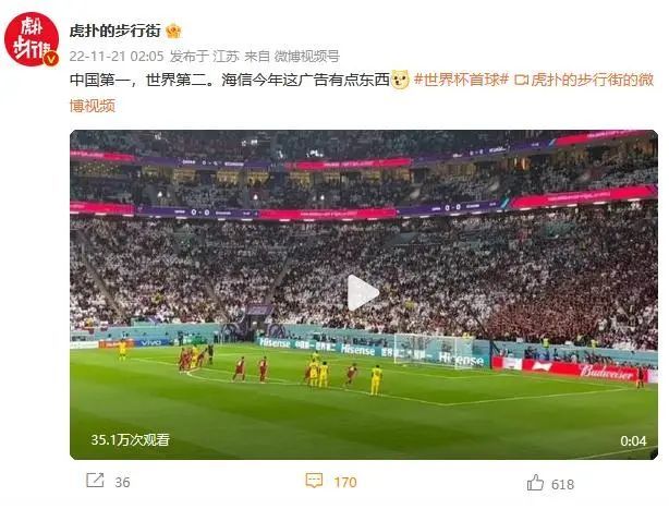 “海信今年这广告有点东西”,国内体育网站虎扑在微博上如是说。