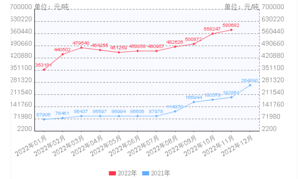 今年11月中旬,Pilbara刚刚举行了第十一次锂精矿拍卖,最终成交价7805美元/吨(品味5.5%,黑德兰港离岸价)。与去年第一次拍出的1250美元/吨相比,已经上涨了524.4%。再来看国内市场,从去年8月份开始就有贸易商先后多次进场囤货,进一步助推锂价上涨。