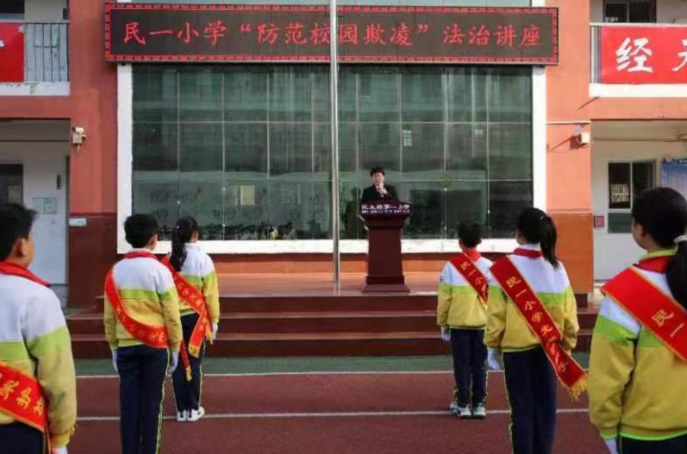 法治日报-法制与新闻网讯(周克影 李海军 王建华)春日四月,繁花似锦。4月10日上午8时,在河南省商丘市民主路第一小学校园内,全校1200余名师生整齐列队举行升国旗仪式。随后,两名法官走上讲台,为师生进行了“预防校园欺凌”专题辅导,让同学们通过法官讲法感受法治的威严。