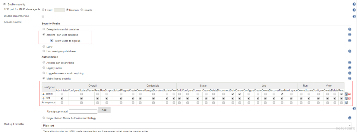 在Manage Jenkins->Configure Global Security做如下配置。
