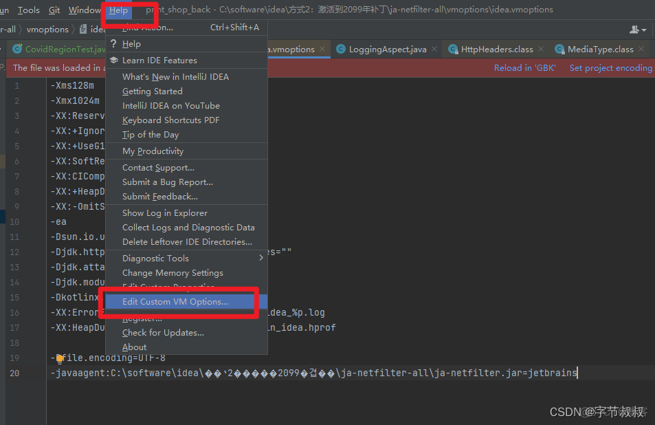 某次更改JVM配置的时候,在 Help->Edit Custom VM Options 中增加了一个UTF-8的设置后,idea无法打开。