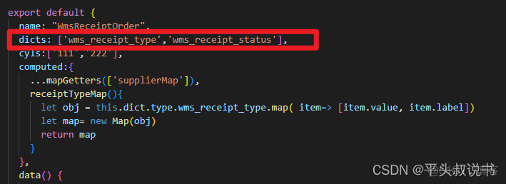 是比较关键的步骤:this.dict.init(this.$options.dicts) 将vue页面上定义的dicts数组传进去,组装数据,请求后端,获取对应字典数据