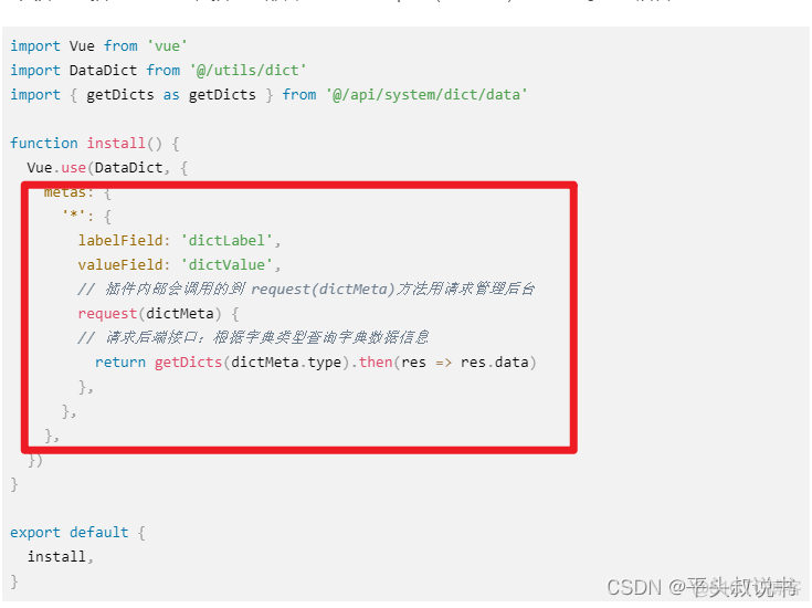 比较关键的是loadDict(dict, dictMeta)来查询后端,dictMeta.request(dictMeta)用的比较灵活,dictMeta是插件安装的时候写的option
