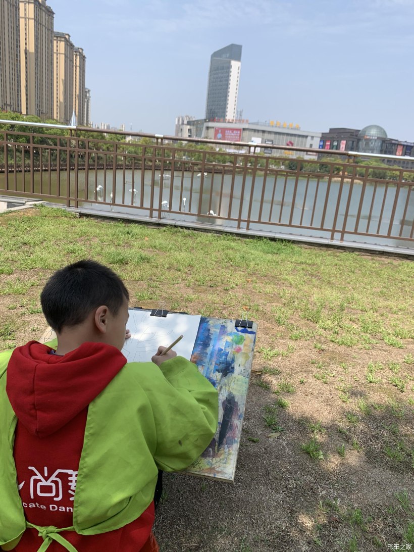 正好孩子在学儿童画,老师说多带孩子去拥抱自然,多到户外写生,锻炼孩子的构图能力,