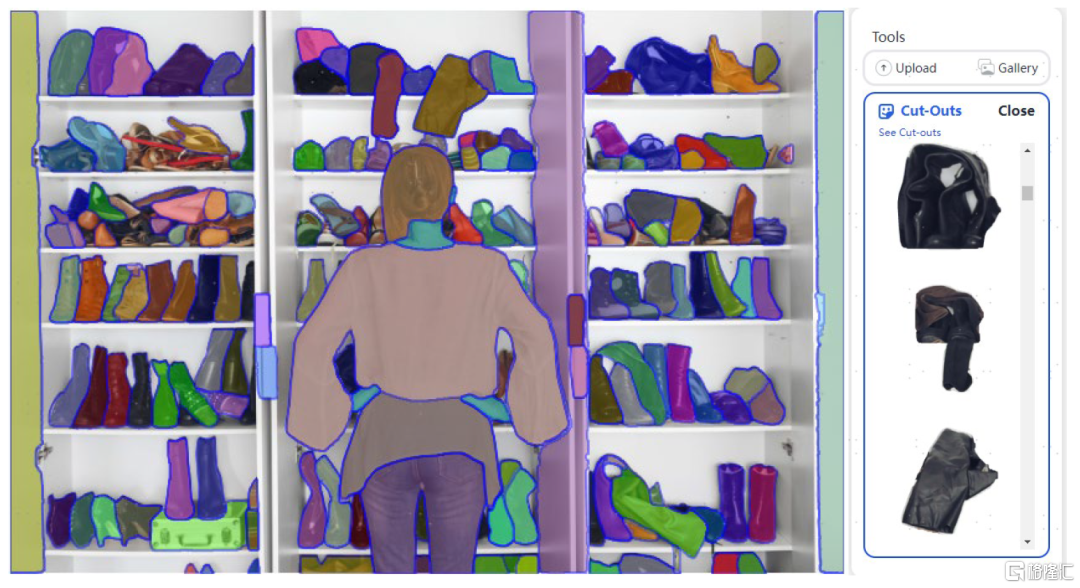 图表1:通过鼠标的悬停,可以选中任意一个物体分割出来;或者通过鼠标圈选一个框,可以提取框中的所有物体。