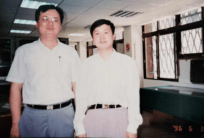 1996年6月3日,汪毅首度参访台北市文献委员会。图为汪毅(右)与台北文献会卞凤奎先生