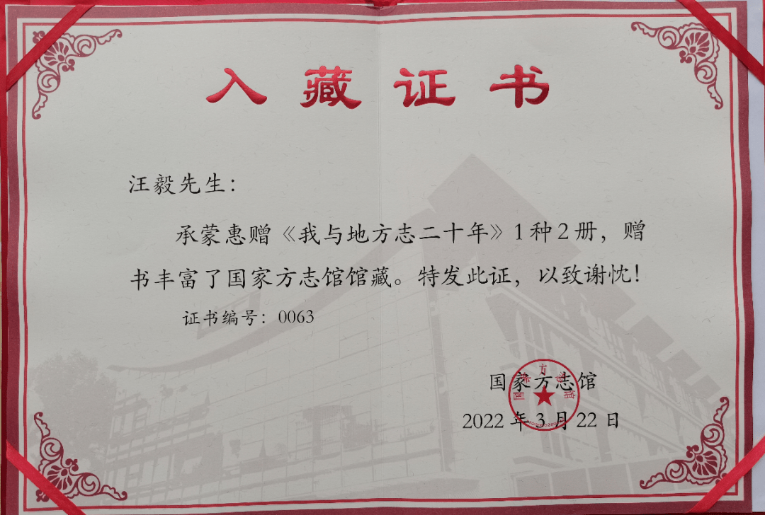 《我与地方志二十年》汪毅著,四川省地方志工作办公室编,入藏国家方志馆