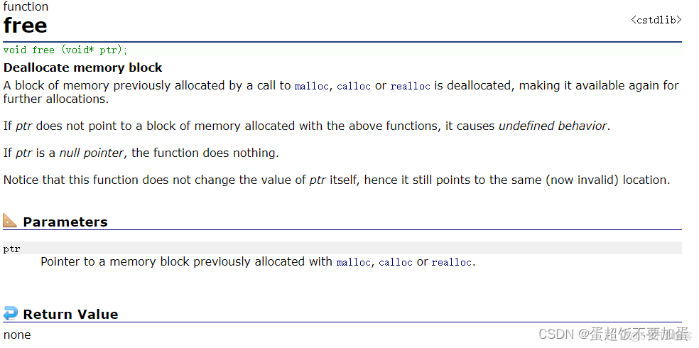 销毁空间我们需要用到free函数,我们打开cpp网站查看该函数有关信息