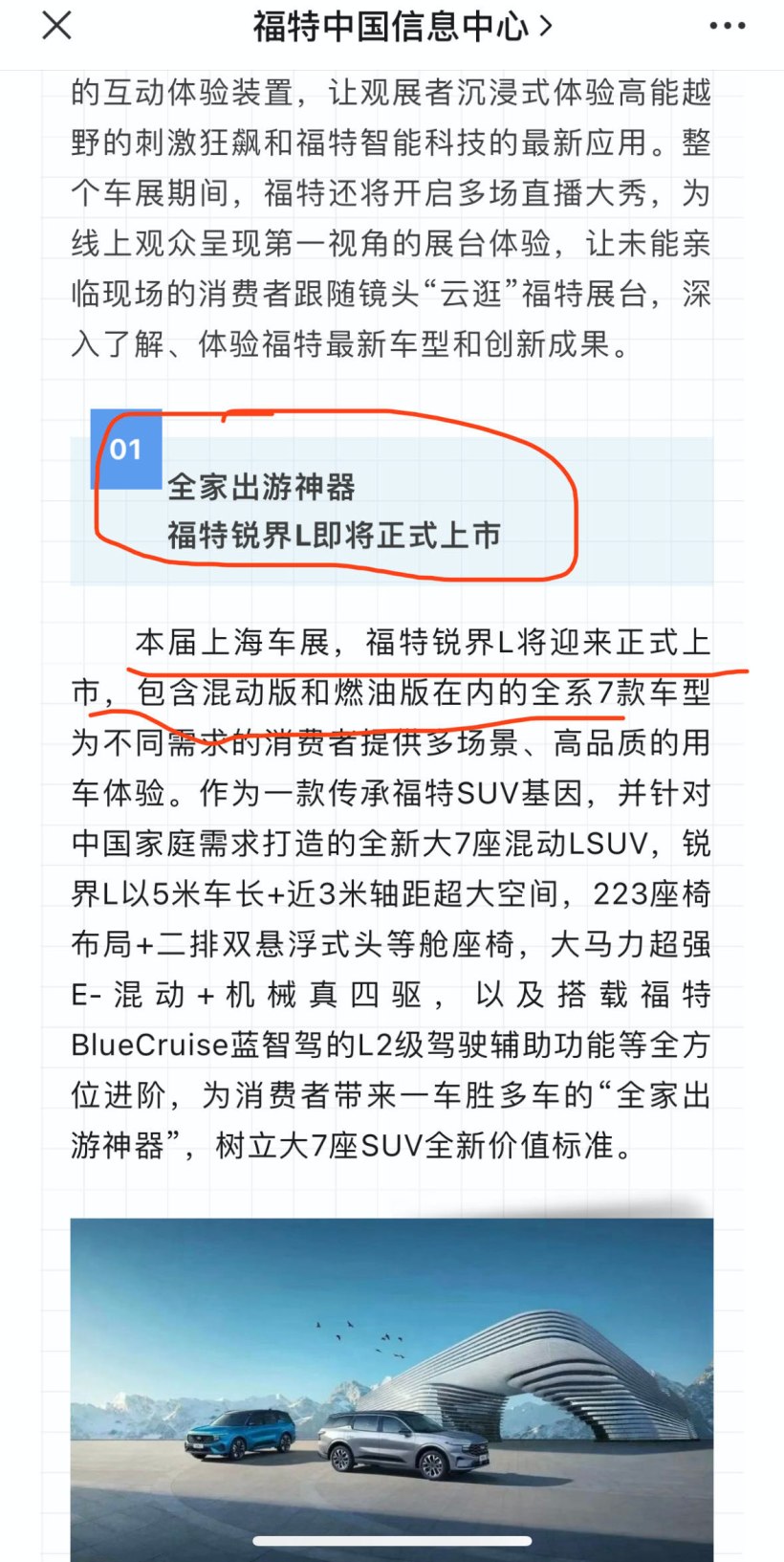 看到福特官方发布的信息,福特锐界L4月18号要在上海车展上上市了。这车动力、空间和配置方面都很符合我的预期的,是我准备入手的家庭出游好帮手,所以一直挺关注的。