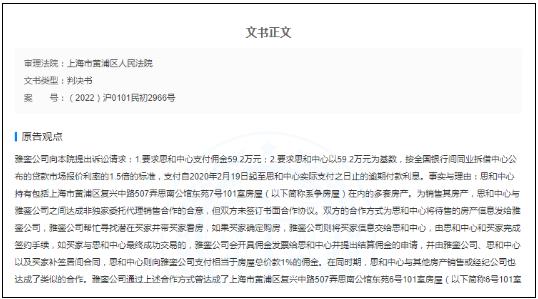 据天眼查App显示,4月4日,上海雅銮房产经纪有限公司与上海思和资产经营管理中心(有限合伙)中介合同纠纷一审民事文书公开。