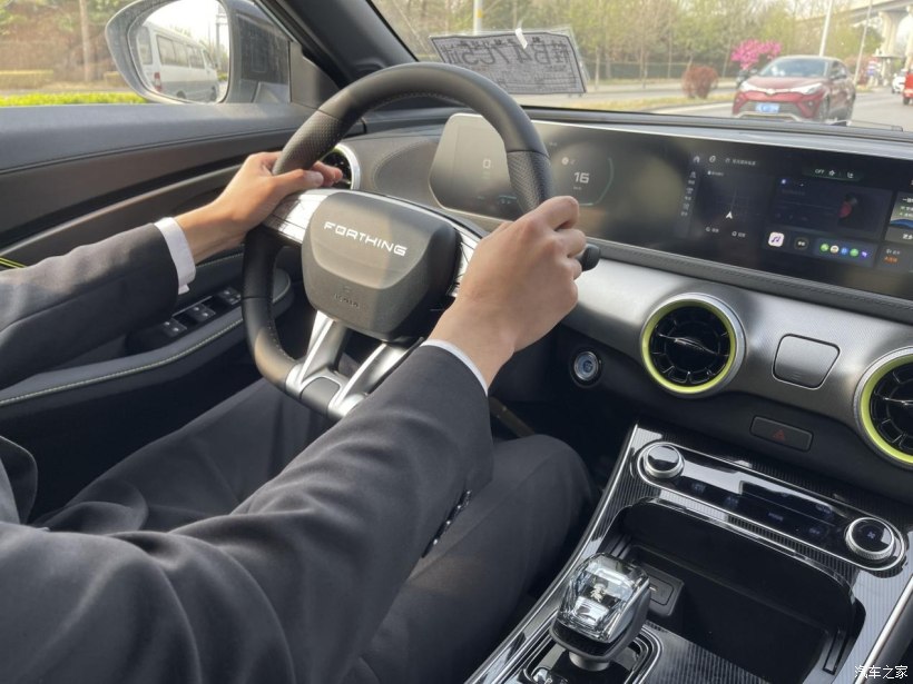 电车的一大优点就是噪音小,在行驶的过程中,雷霆的乘员舱静谧性表现还是让人满意的,我在车内听不到太明显的风噪和胎噪,可以能够以正常的音量交流。开车的时候车机系统也会提醒你前方的路况,比如保持车距,还是很贴心安全的,车机导航也很灵活准确。