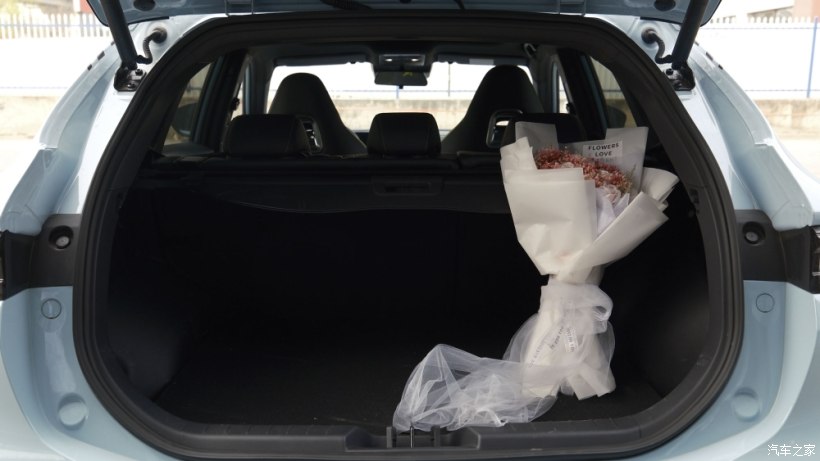 后排座椅也可以放倒,它的后背箱储物空间也够用,有个小玄机它的底板有个15厘米的小隔层,可以额外放东西,不用还能拿掉,是个不错的设计小巧思。