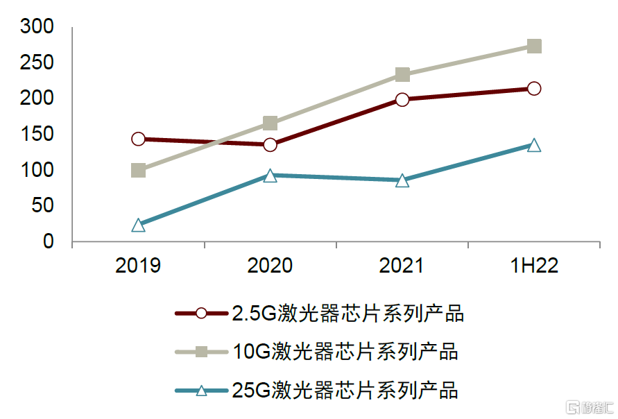 图表22:部分国内厂商在不同速率激光器芯片上的布局情况