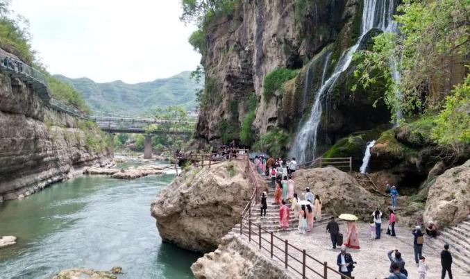 ▲运城岚山根景区迎来客流高峰,“近郊游”受到青睐