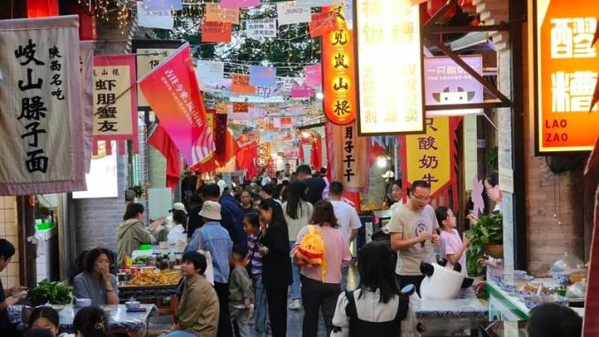 ▲太原千年古街钟楼街人山人海,享受假期。