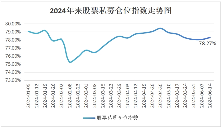 值得一提的是,自5月份以来,股票私募首次加仓。根据私募网络数据,截至6月14日,私募股权指数为78.27%,在上周基础上小幅上涨0.24%,结束了私募股权指数连续5次下跌的趋势,这也是私募股权自5月份以来首次加仓。