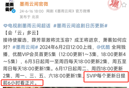 《国家商报》记者采访了解到,过去的热播剧《莲花楼》和《长相思》只有在播出结束时才会推出“增加收费”来观看大结局。然而,今年的《生活的乐趣2》、《墨雨云》和《玫瑰的故事》在播出后不久或刚刚开播,并在VIP的基础上收取了一波SVIP费用。