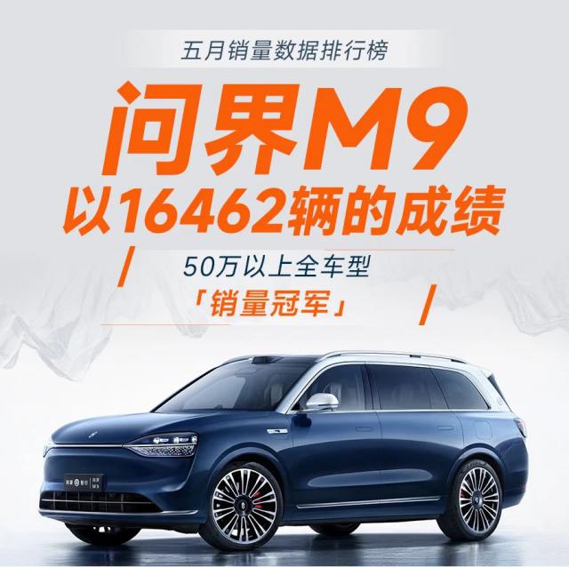 回放 5 月度销售排行榜,问界 M9 以 16462 这辆车的成就,击败了宝马。 X5、奔驰 GLE 等待其它列强,赢得 50 超过一万辆车的销售冠军。是的,是整个车型,没有更多的外部定语。