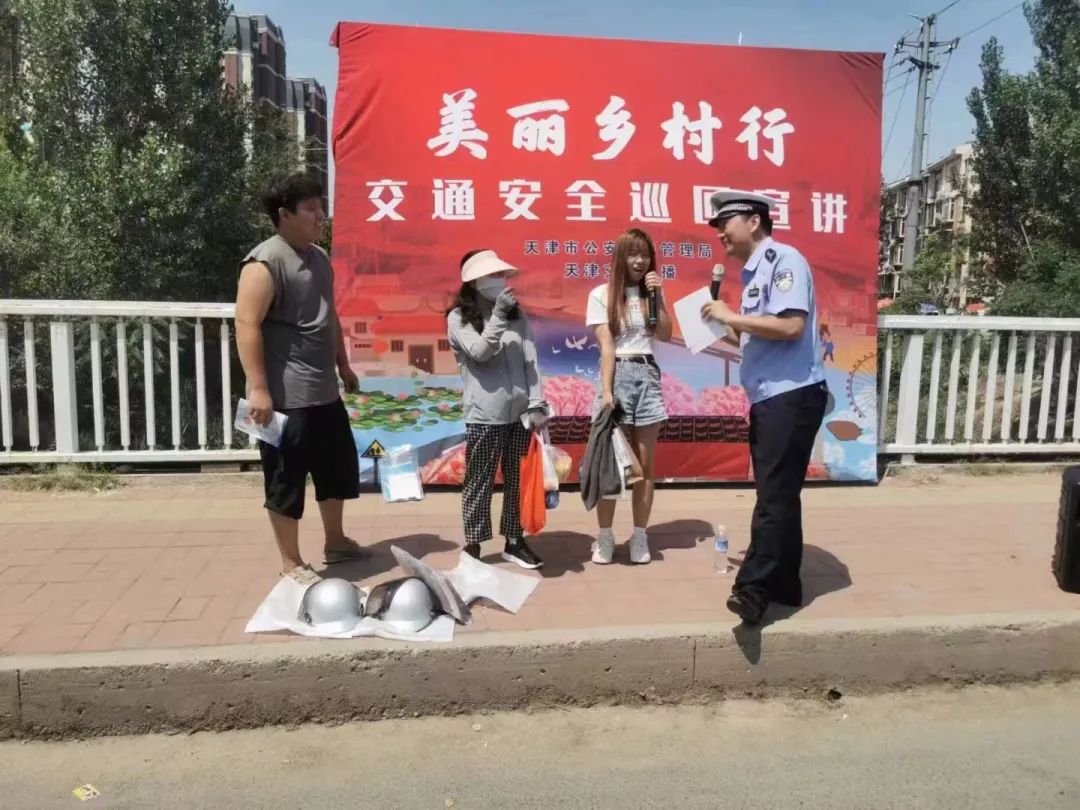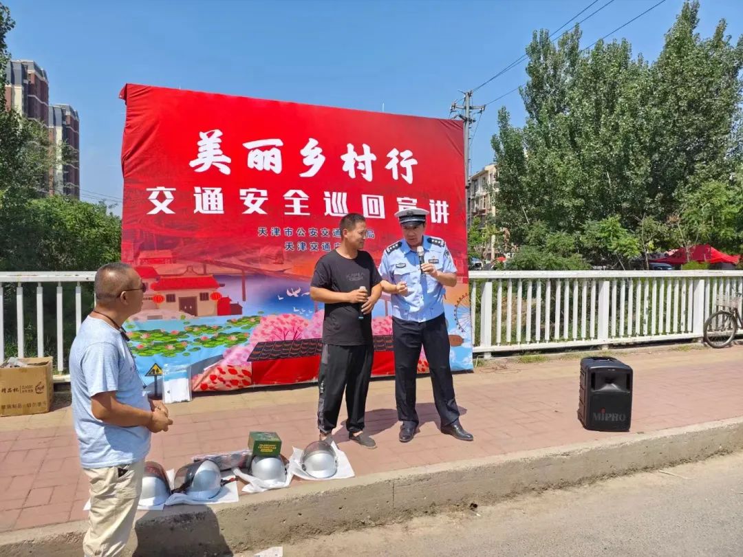 "暑假快到了,今天我们来赶市,没想到在这里还能赶上听交警叔叔讲课!六月二十六日上午,在临近西青大学城的姚村大集上,前来赶集的学生小王被一次特别的活动所吸引。在全市正在开展的“争当文明礼貌天津人”活动中,市公安交通管理局实施的“美丽乡村之旅”文明交通宣传活动正在这里举行。农民朋友、大学生、远方的“食客”都在购买美食的同时,学到了很多日常出行必备的交通安全知识。