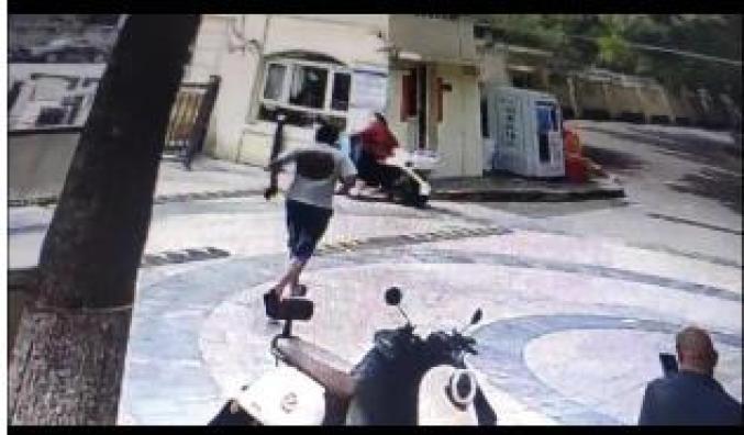 原题:“惊险!坐在电瓶车上突然倒在地上,幸好有他…”