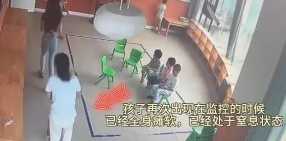 大约3分钟后,白衫老师抱着女孩再次出现在监控画面中,但此时女孩已经失去了知觉。
