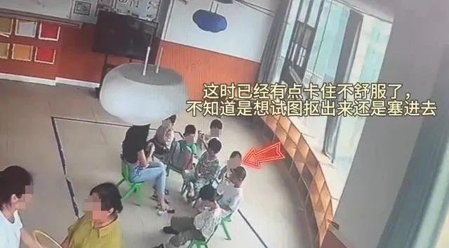 监控录像显示,事件发生在6月20日14时48分左右。在一个房间里,七个孩子坐在一个穿着黑色衣服的老师面前。她给了其中一个女孩一块面包,然后女孩开始吃。