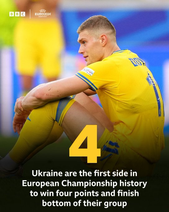 在欧洲杯上,4分垫底的乌克兰也是首例。