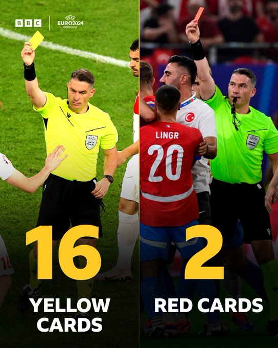 这场比赛共提供18张黄牌和2张红牌。比赛结束后,双方发生了冲突,最终乔里染红,绍切克、居勒尔染黄。捷克中场安东宁·巴拉克在第20分钟获得红牌,被罚下。因此,他成为欧洲杯历史上最早染红的球员,超越了2008年6月17日对阵意大利的阿比达尔。当时,法国人在比赛的第24分钟就染红了。