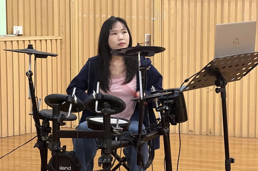 早上9点半,文化园区和邻居中心的活动室里充满了兴奋。舞台上,一个女孩挥舞着红色的鼓棒,热情而高昂。她用鼓架独奏重新诠释了经典作品《没有共产党就没有新中国》,风味独特。这个节目独特,赢得了许多阿姨和叔叔的掌声。