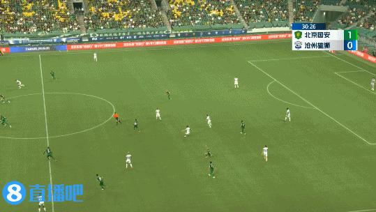 第 30 一分钟,沧州后场直接长传找前场,奥斯卡右路得球扣球内切,一脚兜射偏出立柱。↓