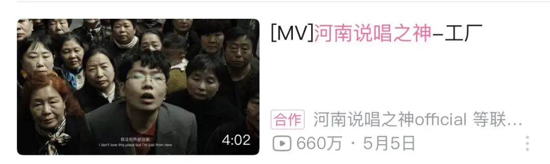 河南说唱之神和她一样是“第二轮游”,在节目播出的第二天就发布了原创音乐《工厂》的MV。由于电影感和歌词的真实表达,他在社交平台上引起了广泛的讨论。他自己发布的微博转发量突破2.4万,MV在哔哩哔哩播放量超过660万次。