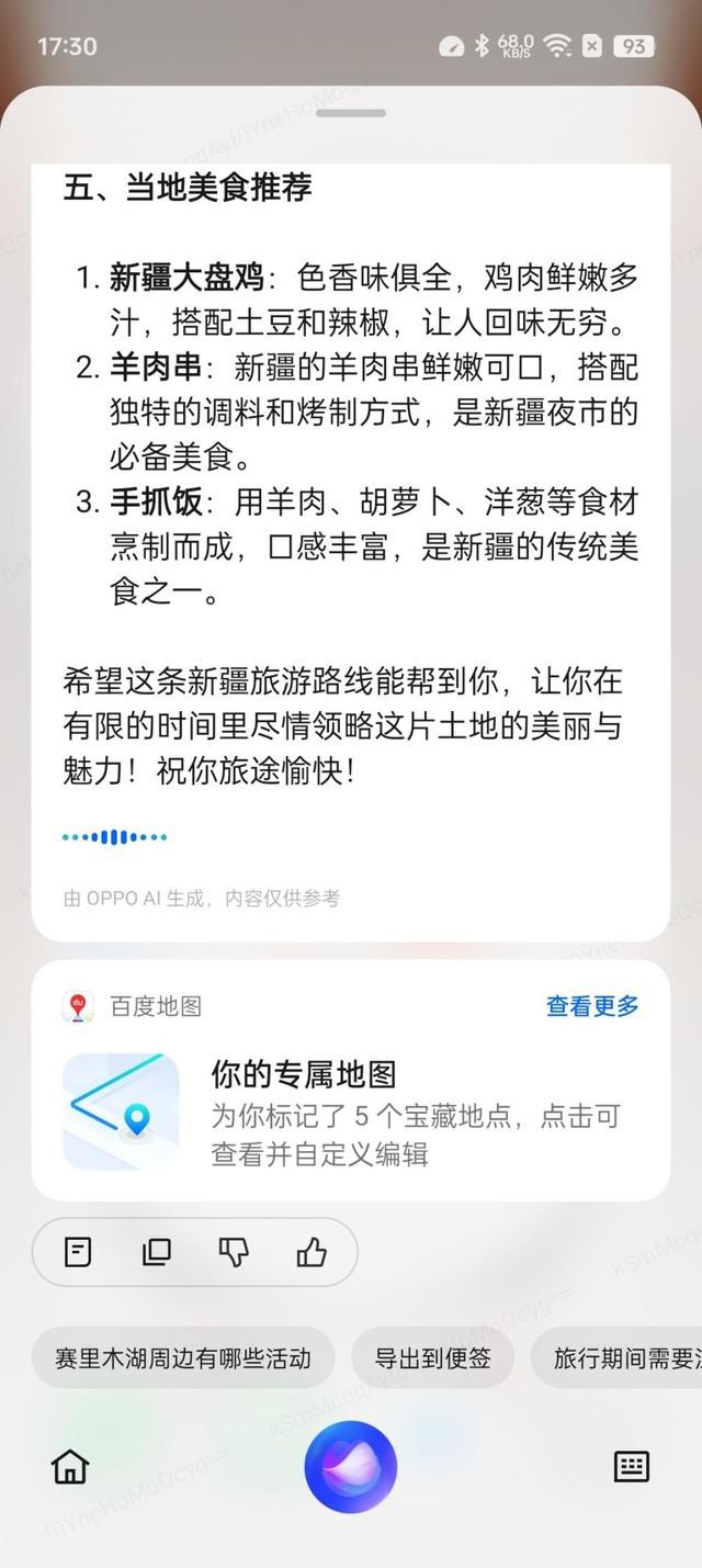 不想制定计划,想旅行更有趣?一加 Ace 3 Pro 小布助手现在可以成为旅游助手。只要你说出你想去的地方和时间,小布助手就可以直接生成旅行计划。不仅如此,小布助手还可以直接推荐当地的餐厅、景点等兴趣点,给小布好吃好玩的。