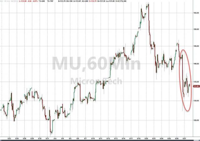 美光科技跌超 7%,领跌一批芯片股。